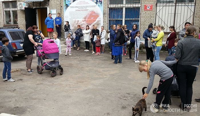 К старому двухэтажному зданию с самого утра тянется длинная очередь. Взрослые терпеливо ждут, пока их пригласят, дети бегают вокруг, играют. Склад центра расположен в нескольких залах на первом этаже.