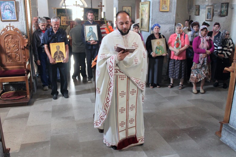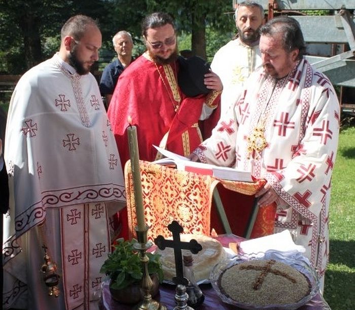 Након заамвоне молитве извршен је трократни опход - литија око храма и освећење славског кољива и резање колача, у славу и част заштитника ове Свете обитељи.