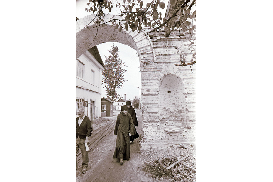 Прве службе су почеле да се обављају у Надвратном храму Владимирске иконе Мајке Божије. Без обзира на то што је храм био уништен до темеља, први је обновљен, са надом да ће Богородица помоћи обнављање манастира. 3. јуна 1988. године, на дан празновања Владимирске иконе Мајке Божије, овде је одслужена прва литургија. За време богослужења, храм није могао да прими све који су желели да се моле. Било је тесно чак и многобројној братији и искушеницима, а многи су стајали и на улици, у порти.