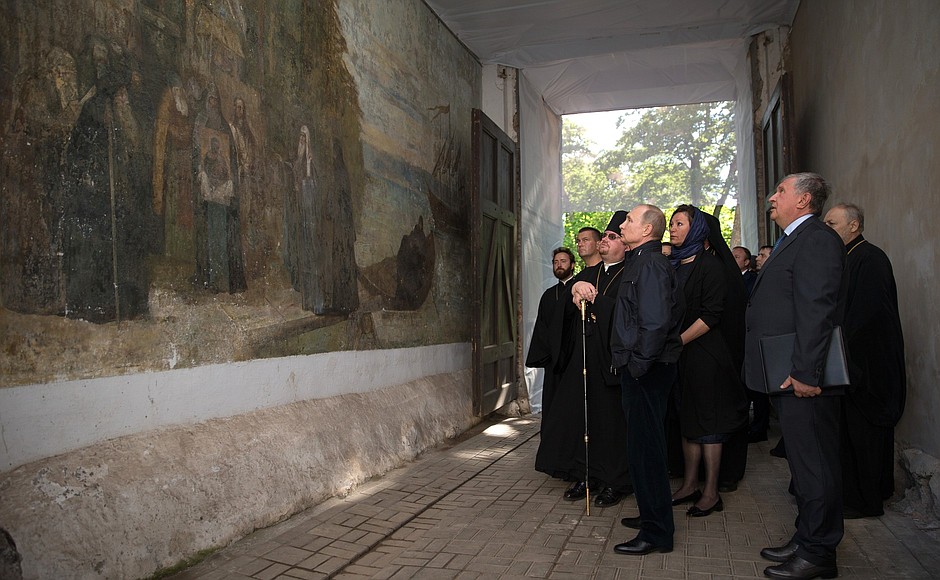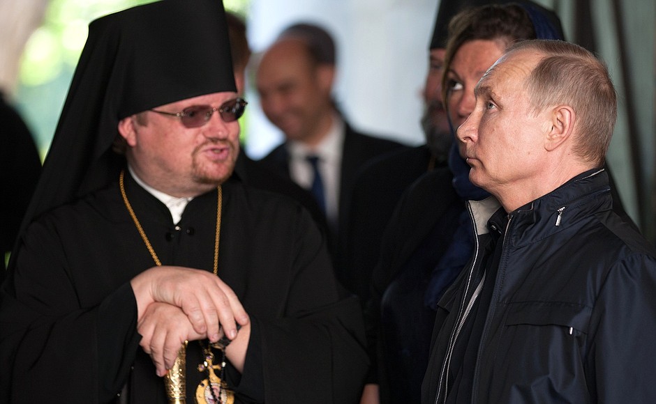 В ходе посещения острова Коневец на Ладожском озере Владимир Путин ознакомился с начинающимися масштабными работами по восстановлению комплекса Коневского Рождество-Богородичного монастыря и пообщался с представителями Выборгской епархии, сообщает сайт «Президент России».