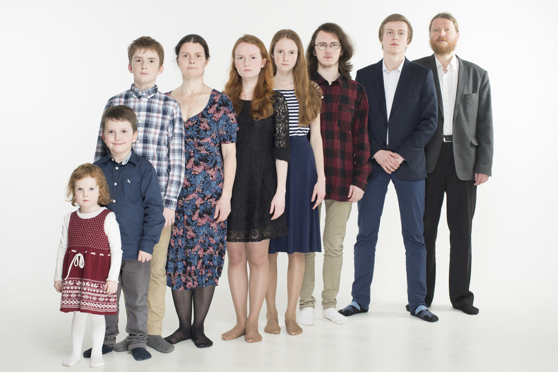 Семья. Справа налево: Сергей, Николай, Иван, Василиса, Ася, Ирина, Алексей, Платон, Саша. Фото Алексея Макарова — Видели ли вы в своих научных исследованиях доказательство божественного? Может, вы молились, чтобы вам открылась какая-нибудь загадка природы, и это случилось?