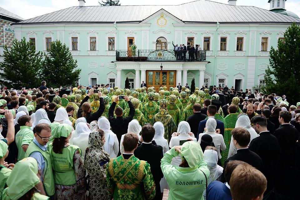 Дай Бог, чтобы именно такая вера жила в нашем народе. Сегодня многим испытаниям подвергается эта вера, но испытания были всегда. И в языческом Риме, и в средневековой Европе, и в России, и особенно в новое время, когда появились опасные лжеучения, принятые большинством как политическая доктрина, — многое происходило за эти столетия. Но вера народа сохраняется именно потому, что вера — от Бога, а не от человека. И потому сегодня, в день замечательного праздника, когда я могу видеть вас в таком множестве, как и братьев-архипастырей, приехавших из разных стран, хочется говорить о нашей общей вере, о силе, которая нас объединяет, и о силе, которая открывает путь к Богу. Молимся также святым угодникам и преподобному Сергию, чтобы никогда эта сила не иссякла из нашего народа. Аминь.