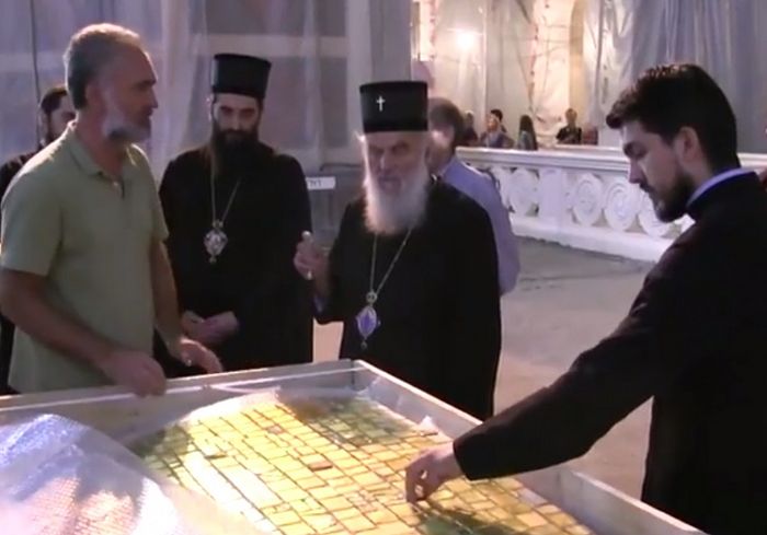 Руски уметници предвођени академиком Николајем Мухином већ два месеца вредно раде на постављању мозаика у куполи Храма, чији су први делови упаковани у 62 палете тежине 10 тона, стигли у Београд 3. Маја ове године. Други контигент са додатним деловима мозаика упакованим у још 62 палете, из Русије је у Београд допремљен 11. јула ове године.