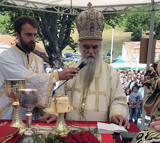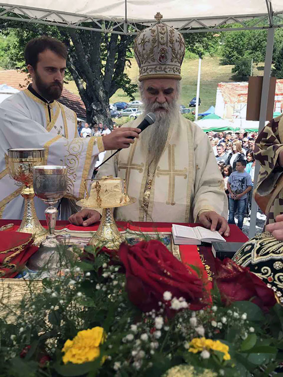 Њихова крв вапије као крв Авељева од земље ка Небу и Богу и призива милост Божју на овај грешни свијет и сабира њихову родбину, потомство, али не само њих, него сабира вјерне са свих страна и са свих крајева земаљских. Ево, данас, призвани жртвом Велике и Горњег Полимља, призвани жртвама дјеце, мајки, дјевојака, младића, жена трудница, стараца, углавном, побијене нејачи од наци фашиста и злогласне „Принц Еуген“ дивизије и, такође, злогласне „Скендер бег“ дивизије, вулнетара, злочинаца, балиста, призвани жртвом те дјеце и осталих, који су пострадали у Велици и Горњем Полимљу, дошли су нам драга браћа Архијереји: Високопреосвештени Архиепископ и Митрополит црногорско-приморски Г. Амфилохије, који је започео обнову сјећања на жртву Велике заједно са вама овдје, приликом изградње овог храма, ове мале црквице, али која постаје сваким даном све већа пред Богом и која свијетли жртвом новомученика. Дошао нам је, такође, драги у Христу брат, први пут у Велици саборном мјесту свих жртава Горњег Полимља, Архиепископ словачки Георгије, са нама је и, драги у Христу брат, архимандрит Нектарије из Атинске архиепископије и, вама добро познат, Преосвећени Владика јасеновачки и славонски Г. Јован који је много учинио, дао велики допринос за причислење лику Новомученика српских Величких, Горњеполимских и Пивских мученика, јер он то доживљава тако, а тако и јесте, да су се сви они сјединили са јасеновачким, јадовинским, пребиловачким и осталим Светим новомученицима српским“, казао је Владика.