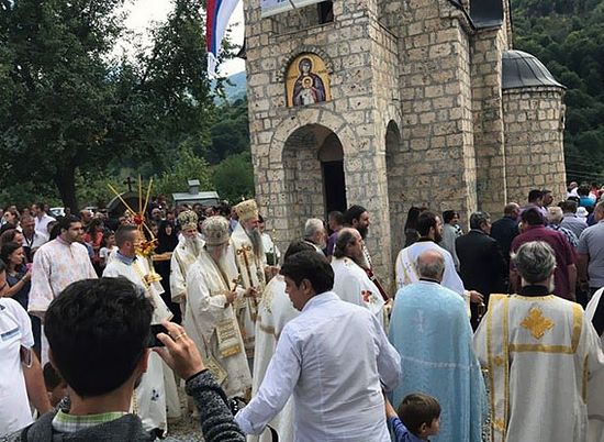 Свету Архијерејску Литургију, у цркви Светих Кирика и Јулите, служили су: Њихова Високопреосвештенства Архиепископ цетињски Митрополит црногорско-приморски Г. Амфилохије и Митрополит михаловско-кошицки Православне цркве Чешке и словачких земаља Г. Георгије, Њихова Преосвештенства Епископи пакрачко-славонски Г. Јован и надлежни Епископ будимљанско-никшићки Г. Јоаникије и архимандрит Нектарије из Атинске архиепископије са Пелопоноза, уз саслужење бројног свештенства и свештеномонаштва и молитвено учешће великог броја вјерног народа.