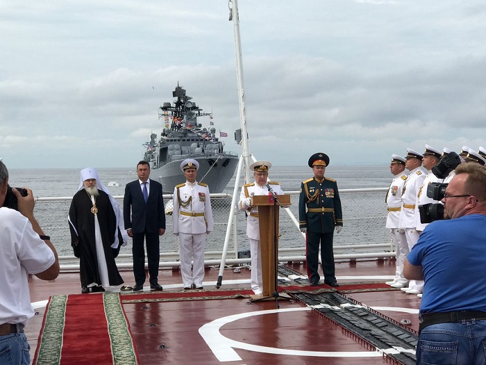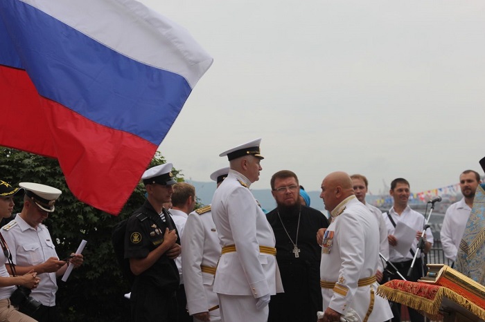 На молебне присутствовали командующий Тихоокеанским флотом адмирал Сергей Авакянц, офицеры и матросы ТОФ, прихожане храмов Владивостока. На молебне пел хор Покровского кафедрального собора.