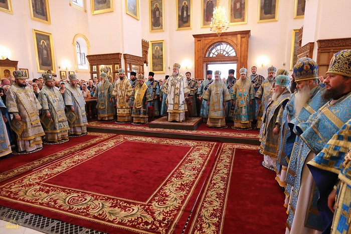 30 июля в Свято-Успенской Святогорской Лавре собор архиереев, множество духовенства и сотни паломников сугубо величали чудотворную Святогорскую икону Божией Матери.