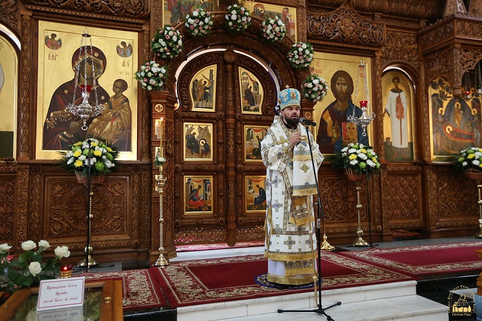 Проповедь произнес митрополит Горловский и Славянский Митрофан. Поздравив всех с праздником, владыка сказал о грядущем торжестве празднования 25-летия открытия Святогорской обители, вспомнил о годах возрождения обители, а также о главной святыне. «Она здесь Игуменья, Она здесь Хозяйка, и всякий, кто приходил сюда и хотел остаться, он молился Матери Божией, прося у Неё благословение…» — как тогда, так и сейчас все, кто приходит помолиться в обитель, идут к этому чудотворному образу. «…И то чудо, которое мы видим, что полуразрушенная обитель в некогда безбожном Донбассе стала духовным центром, стала одной из лавр нашей Церкви Православной… — это свидетельство того, что Матерь Божия здесь».
