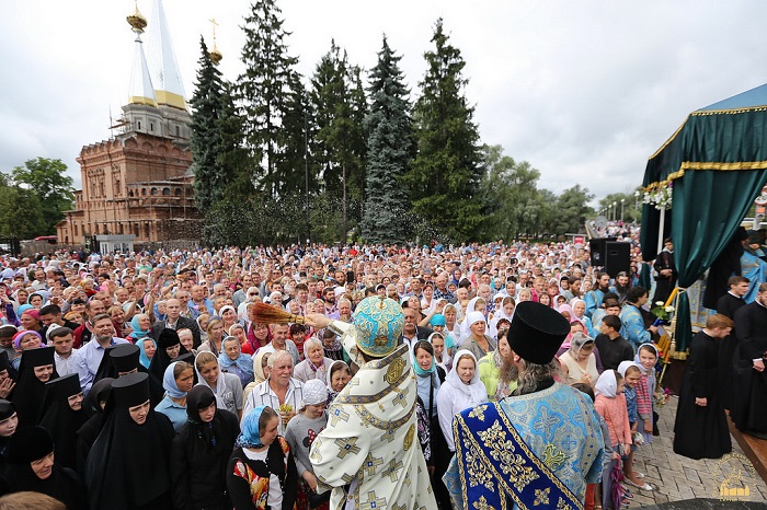 В 7:00 Святогорский наместник митрополит Арсений в сослужении лаврского духовенства возглавил водосвятный молебен у фонтана перед Успенским собором. По окончании молебна Святогорский митрополит Арсений произнёс проповедь, посвящённую главной святыне Святых Гор — чудотворной иконе Богородицы Святогорской. «Она как Игуменья нашей обители, как символ особого присутствия, особого материнского заступления в нашей святой обители Самой Царицы Небесной».