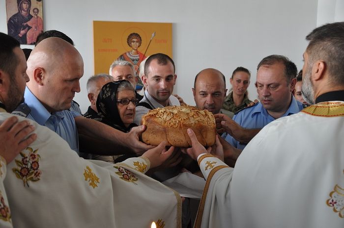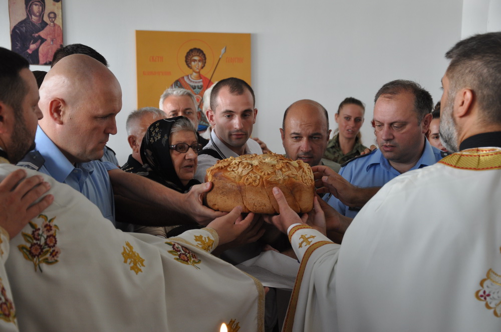 После причешћивања светим тајнама и Литургије, славски колач је пререзао и жито освештао часни војни свештеник Стеван Стевановић. Било је величанствено слушати како славски тропар данас заједно певају припадници 204. ваздухопловне бригаде, чувари нашег неба, богољубива чеда и духовна чада наше Свете Цркве.