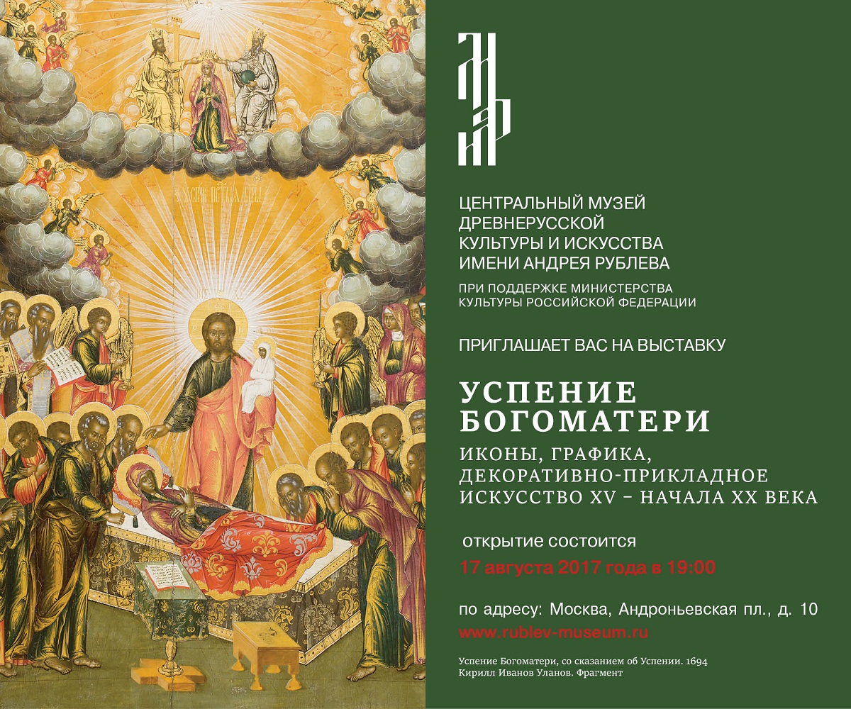 В Центральном музее древнерусской культуры и искусства имени Андрея Рублева 17 августа открывается выставка, посвященная изображению праздника Успения Богоматери в древнерусской художественной традиции, сообщает сайт музея.