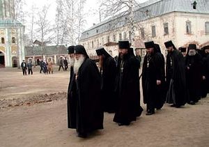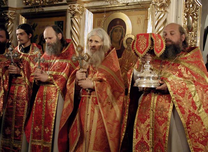 В шок братию поверг следующий случай: во время Литургии (видимо, перед Великим входом) батюшка какое-то время шёл.. немного оторвавшись от земли!