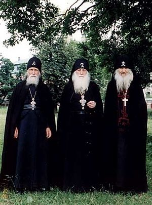 Санаксарские старцы: схиархимандрит Феофан (Даньков), схиархимандрит Питирим (Перегудов) и схиигумен Иероним (Верендякин) Батюшка приезжал в пустыньку и утешал монахинь. Каждой сестре говорил о необходимости непрестанного умного делания и о том, что стяжать благодать Святого Духа можно только в трезвении. Поскольку мы такие строптивые, старец постоянно напоминал нам о смирении, что через послушание должно прийти смирение. Утешал, конечно: то ладан, то просфорочки даст, то маслице, то покроет епитрахилью главу чью-нибудь…