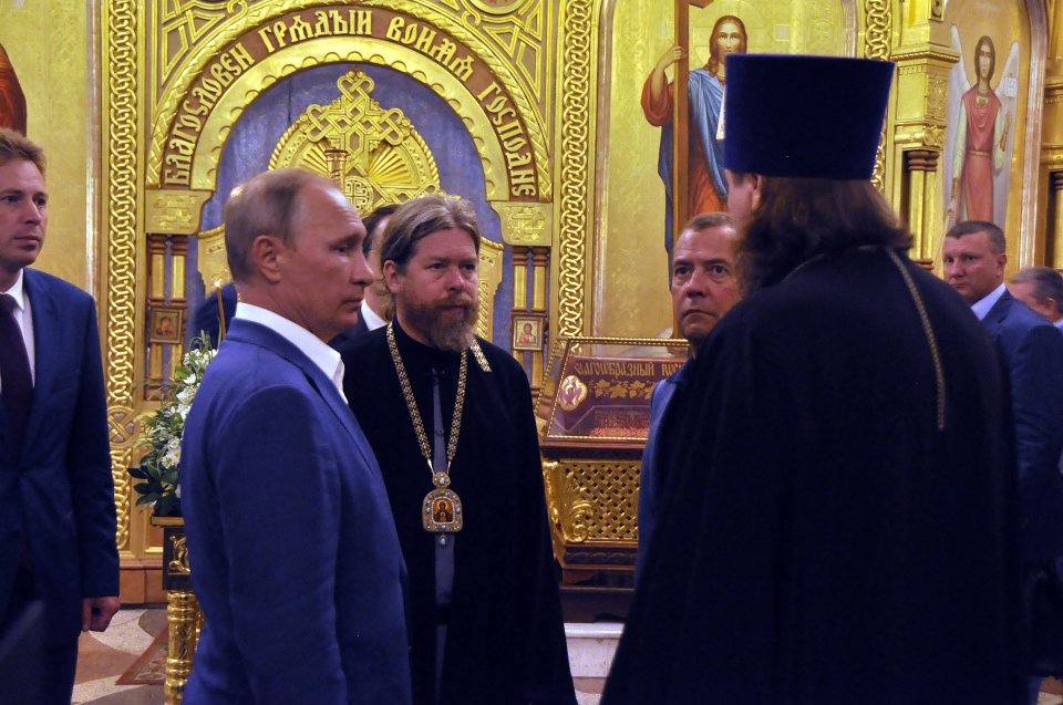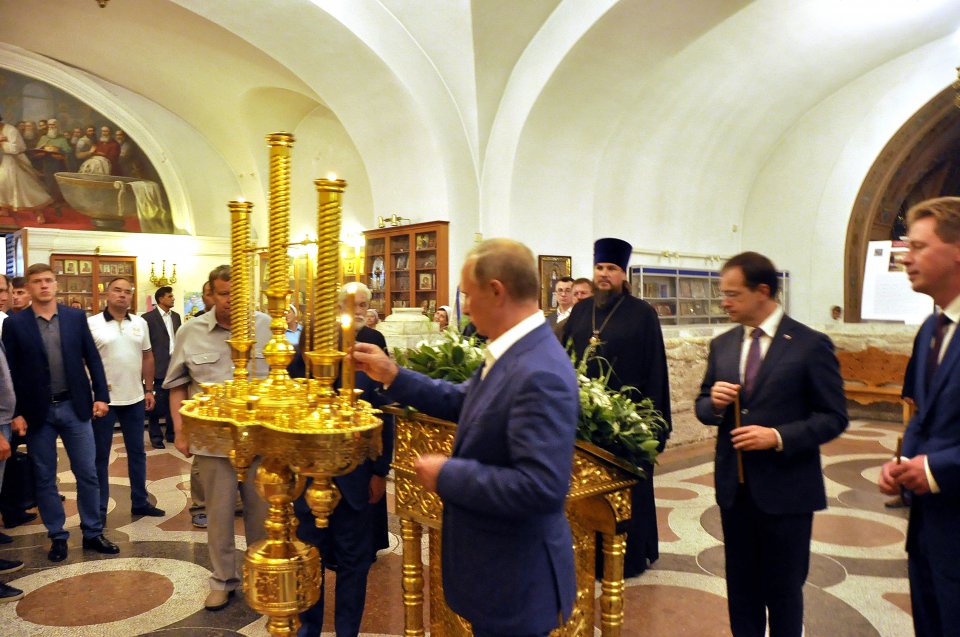 Владимир Путин осмотрел храм и помолился у иконы праздника Преображения Господня.
