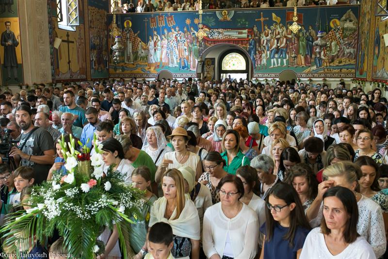 Црква је била испуњена вјерним народом који се сабрао око Св. Тајни Христових. Послије читања Светог Јеванђеља, вјерном народу обратио се бесједом Архиепископ Јован. У Црквом прописано вријеме на богослужењу је у чин чтеца рукопроизведен Томислав Савић из Невесиња, а у чин ђакона рукоположен је Александар Црногорац из Гацка. Послије Свете Литургије, освећено је грожђе и преломљен је славски колач испред храма и у градској управи, након чега је славље настављено трпезом љубави у Епархијском дому.