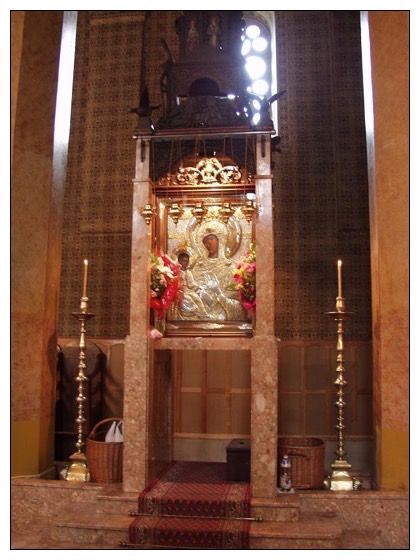 Најприје је икона 270. година била у малој, каменој цркви. Када су Чајничани видјели колико вјерног народа долази на поклоњење икони, онда су средином XIX вијека подигли нову, саборну цркву. Посвећена је, као и стара, Успењу Пресвете Богородице. Црква је грађена од 1857 – 1863 године. Камени звоник призидан је тридесет година касније. Икона је 1863. пренешена у нови храм, гдје се и данас налази. Њено мјесто је са лијеве стране наоса, у посебно израђеном трону.