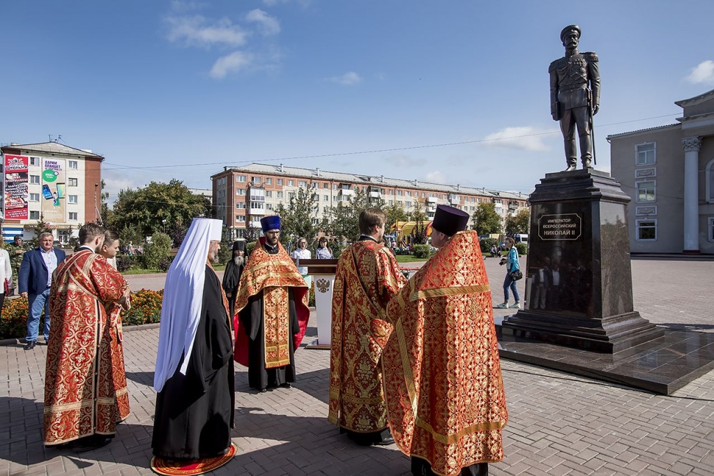 26 августа освящение скульптуры совершил митрополит Кемеровский и Прокопьевский Аристарх. Как отметил архипастырь, установка монумента в честь последнего русского императора приурочена к 100-летию с момента начала гонений на Русскую Церковь, а также к грядущему столетию со дня убиения царской семьи. По его мнению, создание памятника – доброе дело, которое помогает восстановить историческую объективность.
