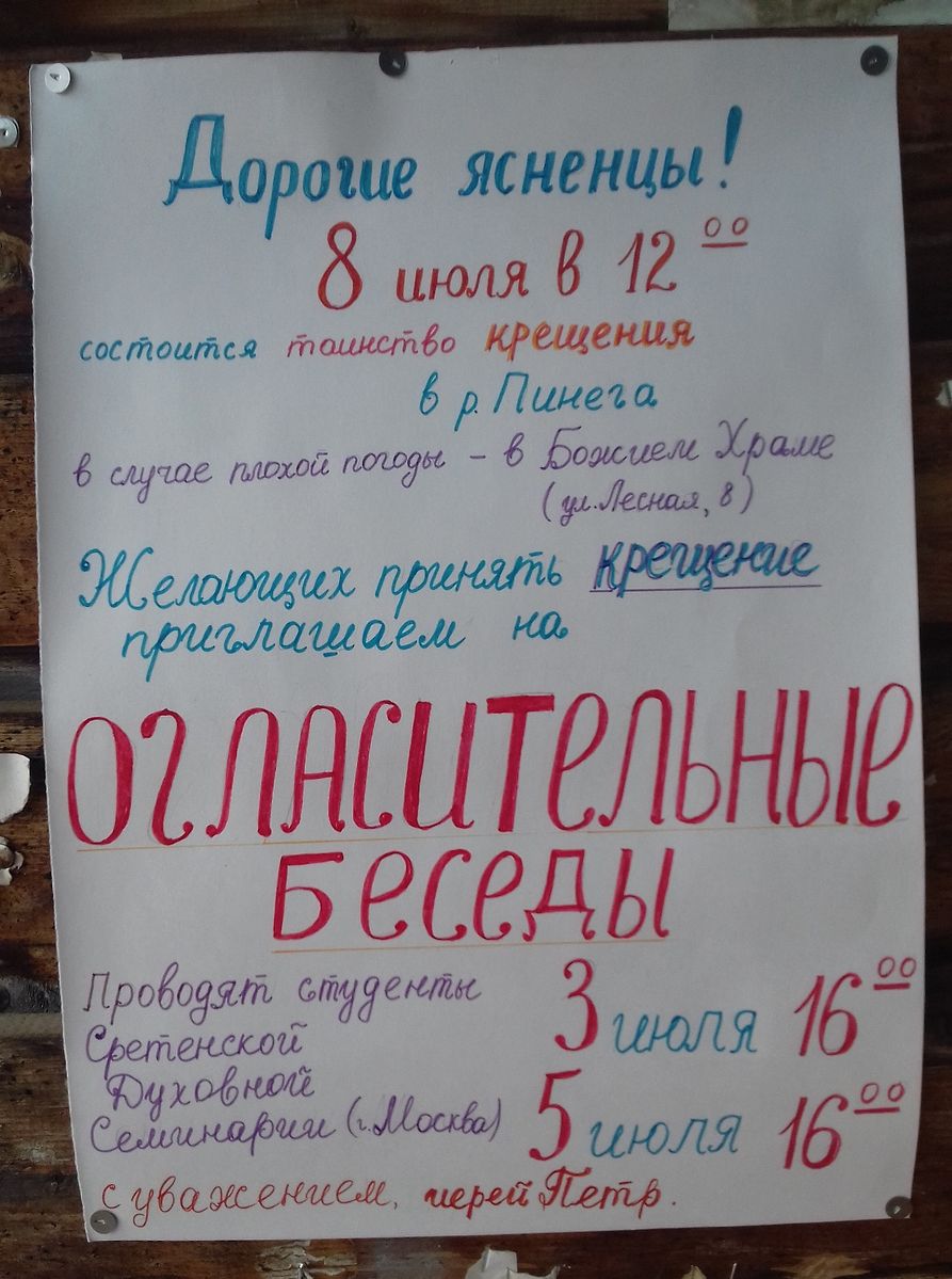 – Конечно, работать с умными, увлечёнными молодыми людьми очень интересно. Случалось много весёлых и даже курьёзных моментов. Особенно запомнился уличный концерт в Пинеге, который давали семинаристы. А в Ясном чуть не перепутали бани, потому что дома в Ясном везде одинаковые, различаются только заборами, верандами... И бани в субботу топят все. Не разобрались сразу, заблудились. Я вовремя вытащил детей из чужой бани, чем вызвал их недоумение, ибо они считали, что пришли по адресу.