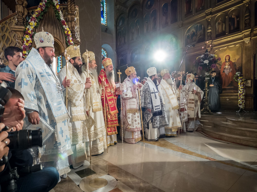 Саборни храм у Сарајеву посвећен Пресветој Богородици окупио је српско становништво из неколико епархија наше Свете Цркве, које је са свештенством, монаштвом и представницима власти испунило и порту и храм чекајући свечано увођење у трон Митрополита дабробосанског г. Хризостома. Светом архијерејском Литургијом началствовао је Његова Светост Патријарх српски Иринеј, а саслуживали су: Архиепископ охридски и Митрополит скопски Јован, Митрополити дабробосански Хризостом, загребачко-љубљански Порфирије и митиленски Јаков (Грчка Православна Црква); Епископи банатски Никанор, средњезападноамерички и новограчанички Лонгин, канадски Митрофан, жички Јустин, врањски Пахомије, далматински и изабрани зворничко-тузлански Фотије, милешевски Атанасије, будимљанско-никшићки Јоаникије, захумско-херцеговачки Григорије, рашко-призренски Теодосије, полошко-кумановски Јоаким, славонско-пакрачки Јован, нишки Арсеније, моравички Антоније и умировљени канадски Георгије и средњоевропски Константин.