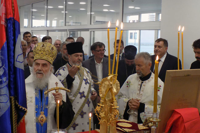 Након церемоније отварања, патријарх Иринеј је, уз саслужење свештенства Српске Православне Цркве освештао Предшколску установу Патријарх Павле.