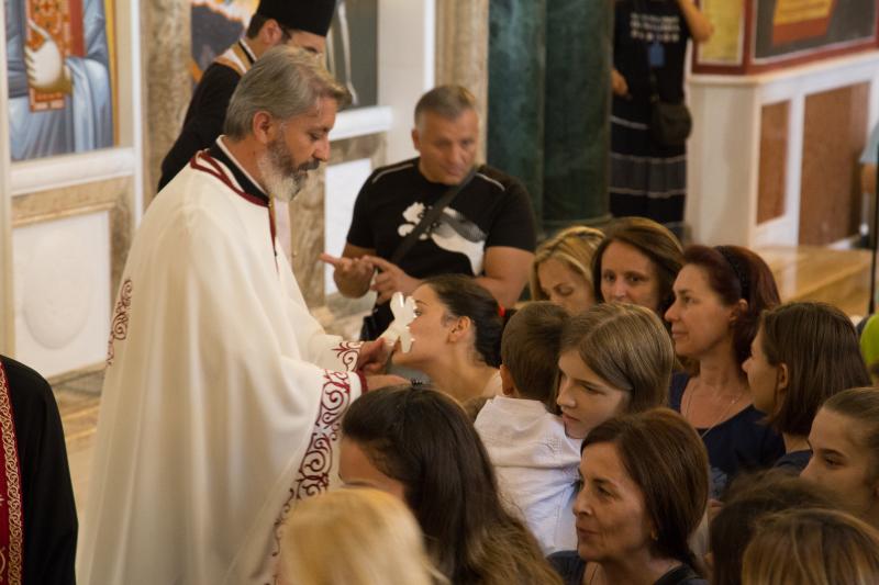 Након Свете Тајне Причешћа којој се велики број вјерног народа присајединио, свештенство је све вјерне покропило водицом за благословен и добар почетак школске године.