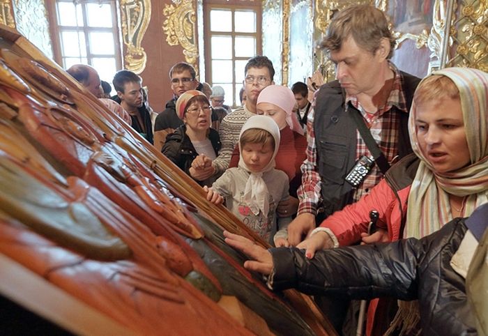 В Трапезном храме Свято-Троицкой Сергиевой Лавры 6 сентября состоялся молебен по случаю освящения рельефной иконы Божией Матери «Кипрская», сообщает Диакония.ru. Образ Богоматери «Кипрская» был создан художником-скульптором Олегом Зоном в рамках проекта «Увидеть ИКОНУ» при содействии фонда поддержки слепоглухих «Со-Единение». Икону передали в храм Явления Божией Матери преподобному Сергию Радонежскому при Сергиево-Посадском доме-интернате слепоглухих для детей и молодых инвалидов. Икона выполнена в технике высокого рельефа.