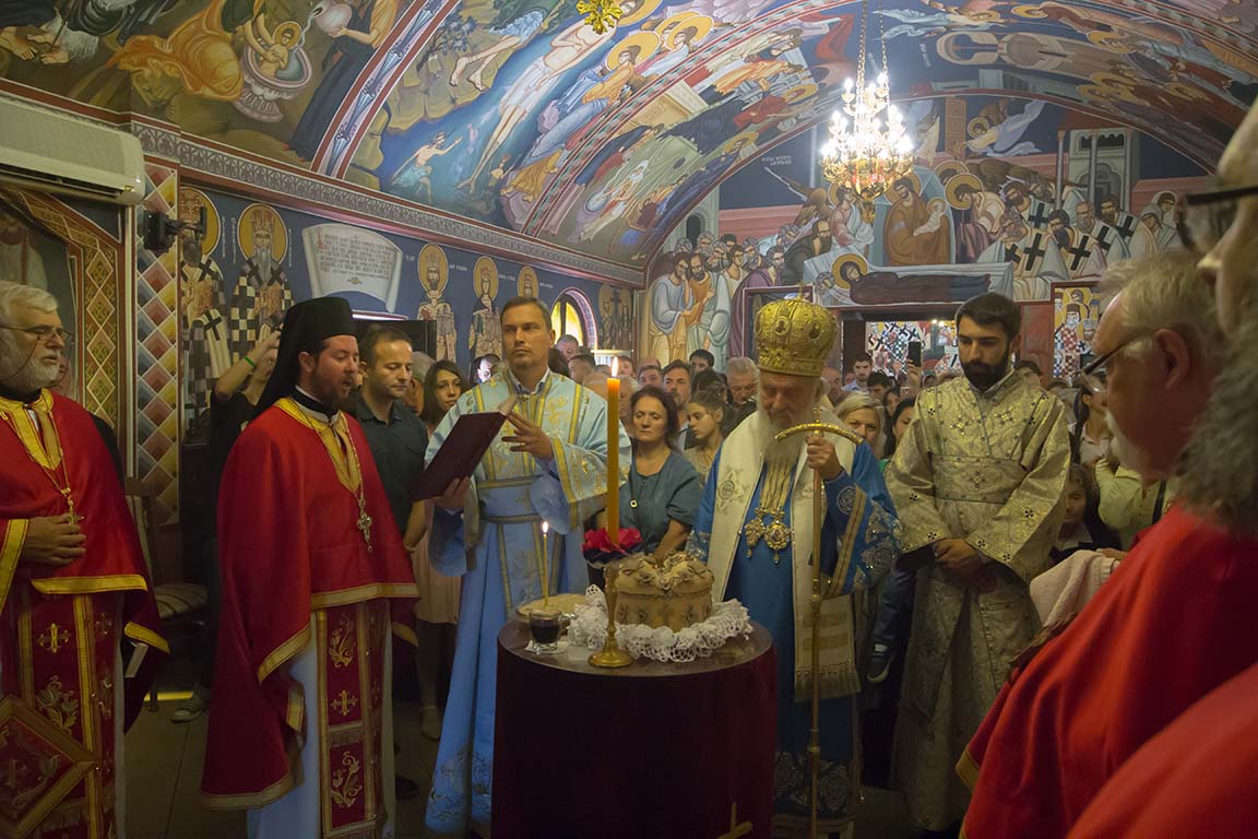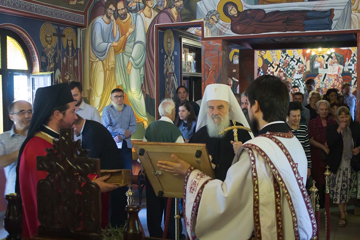 Кум славе је био г. Милош Петровић из Прокупља. Његова Светост је овом приликом поделиo грамате добротворима црквене заједнице на Карабурми. Након ломљења славског колача у беседи о архиепископима и патријарсима српским, Свјатјејши је истакао да су они, живећи свето, добили благодат од Бога, а народ их је пратио кроз добра али и тешка времена.