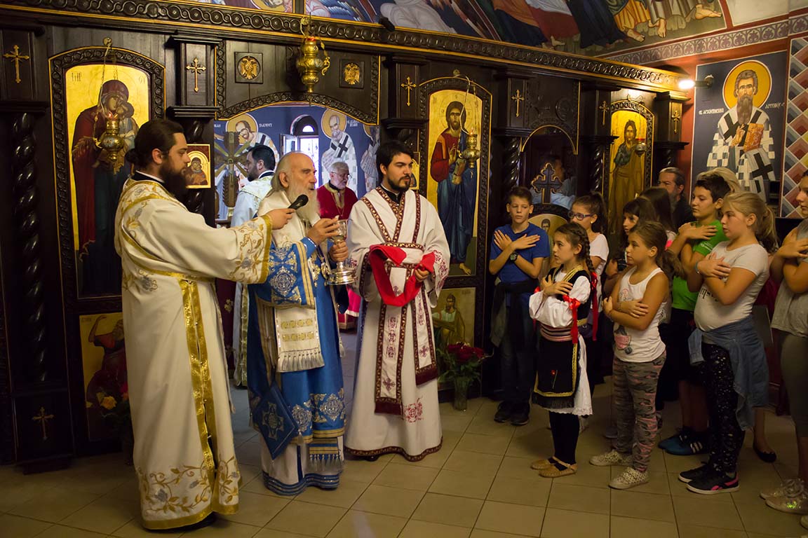 Поводом храмовне славе, Његова Светост Патријарх српски г. Иринеј началствовао је 10. септембра 2017. године светом архијерејском Литургијом у цркви Сабора српских светитеља на Карабурми.
