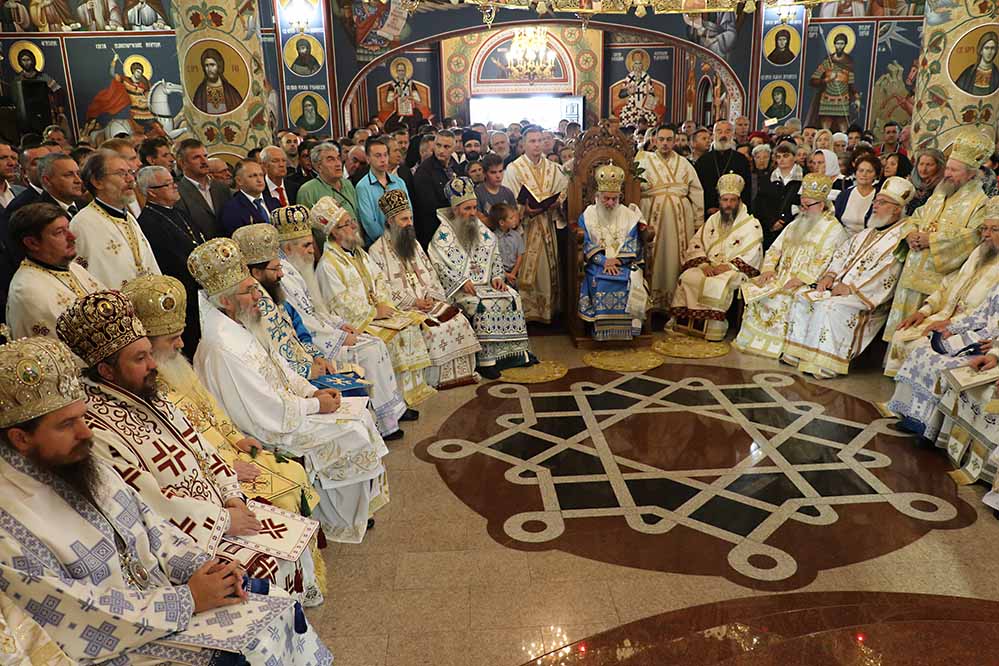 Светом архијерејском Литургијом началстовао је Његова Светост Патријарх српски г. Иринеј. Саслуживали су Архиепископ охридски и Митрополит скопски Јован, Митрополити загребачко-љубљански Порфирије и дабробосански Хризостом и Епископи зворничко-тузлански Фотије, сремски Василије, банатски Никанор, бачки Иринеј, британско-скандинавски Доситеј, жички Јустин, врањски Пахомије, шумадијски Јован, милешевски Атанасије, полошко-кумановски Јоаким, брегалнички Марко, горњокарловачки Герасим, крушевачки Давид, славонски Јован, бихаћко-петровачки Сергије, нишки Арсеније и умировљени канадски Георгије.