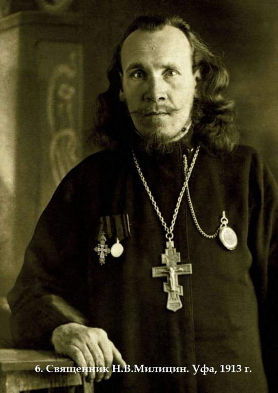 "Псаломщик-диакон градо-уфимской Никольской церкви Николай Милицин, согласно прошению, резолюцией Его Преосвященства от 7 ноября, перемещен на псаломщическое место к Троицкой церкви г.Уфы" (УЕВ 1903 №23 стр.1601).