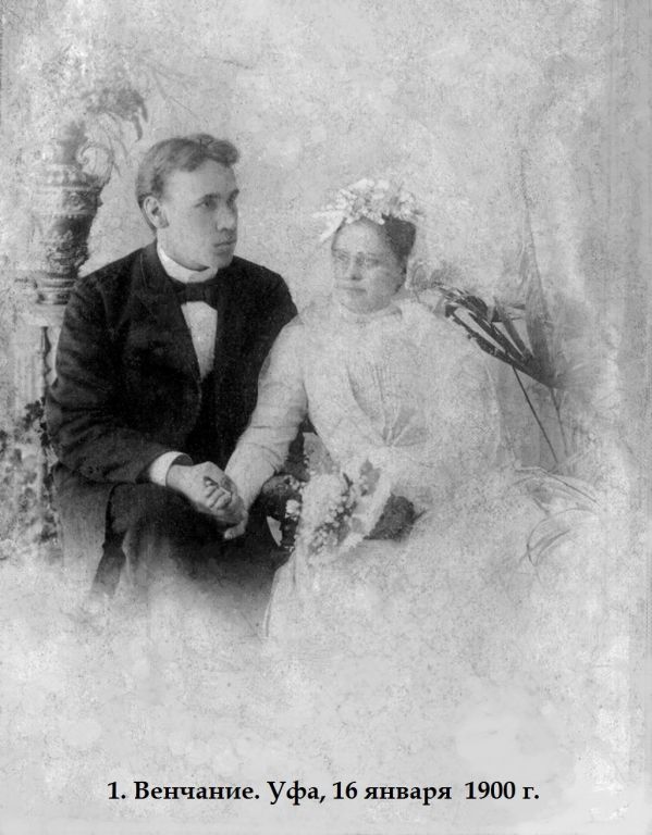 Но сомнений в том, что эта метрическая запись о венчании именно наших родных не было - венчание состоялось 16 января 1900 года в градо-уфимской Успенской церкви, именно эта дата стояла на обороте сохранившихся у нас фотографий (фото 1). Вот запись о венчании:
