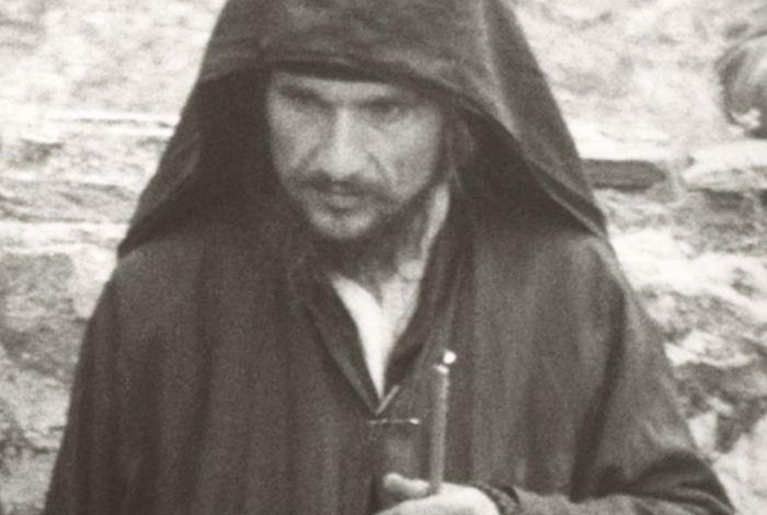 In the Old Russikon, practically abandoned and gradually decaying at that time, Fr. George lived in complete solitude, spending his time in prayer and fasting. He never ate fresh bread, only rusks or a warm flour-water mixture. His handiwork was making brooms, which he would trade for the rusks. Greatly loving nature, Fr. George spent all his days in his cell, that impressions from the beauty of nature would not occupy his heart and not disturb his prayer. Only at night would he leave his cell and keep his prayerful vigil according to the rule of his teacher Elder Joseph the Hesychast under the open sky—even in winter when it was very cold in the Old Russikon, standing rather high above sea level. He greatly loved nighttime prayer. The mysterious silence of the night helped his contemplation.