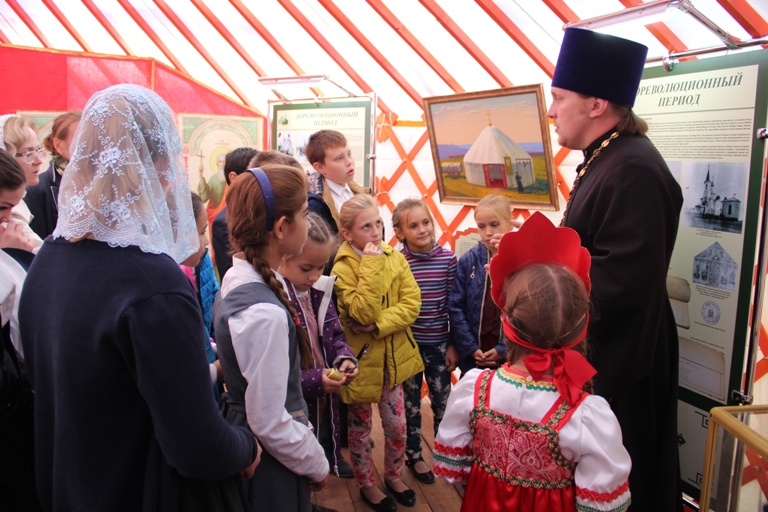 Символическим объявлением об открытии кибитки-музея стал звон колокола, который совершили воспитанники воскресной школы вместе с архиепископом Юстинианом.