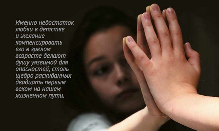 Именно недостаток любви в детстве и желание компенсировать его в зрелом возрасте делают душу уязвимой для опасностей, столь щедро раскиданных двадцать первым веком на нашем жизненном пути.