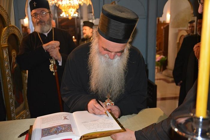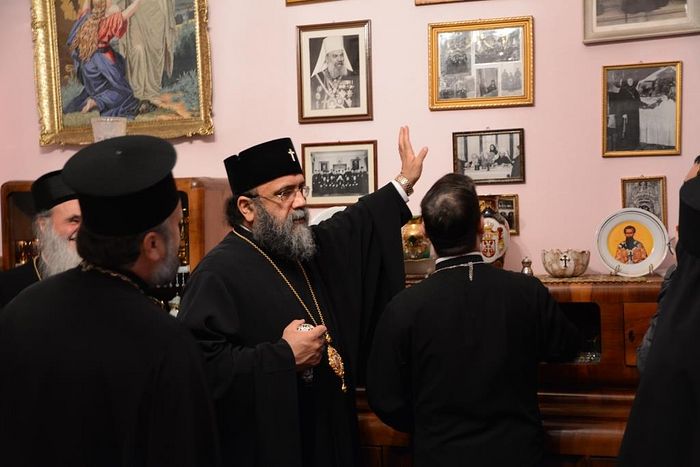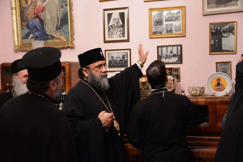 На дан Покрова Пресвете Богородице, 1/14. октобра 2017. године Господње свештенство трстеничког храма Пресвете Тројице на челу са старешином високопречасним протојерејем Марјаном Вујовићем и припадајући им верни народ били су удостојени особитог дара нашег Преосвештеног Епископа Господина Давида, који им је у посету довео ,,три анђела цркава“ (Отк 2,1; 3,1), тј. тројицу високопреосвећених Владикâ из древне и сада многострадалне Патријаршије Антиохијске: Митрополита аркадијског Василија (Мансура), Митрополита хуранског Саву (Испера) и Митрополита немачког и средње – европског Исака (Бараката). У њиховој свештеној посети био је и високопреподобни Архимандрит отац Прокопије, такође клирик Антиохијске Патријаршије, затим: секретар нашег Епископа, високо – пречасни протојереј – ставрофор Драги Вешковац, његова екселенција градоначелник града Трстеника господин Александар Ћирић, презвитер Данијел Стефановић - парох љубостињски, презвитер Милутин - парох велућки, протођакон Андрија Јелић, теолог Михаило Вуловић и господин Стефан Перовић. Драги гости су посетили, поред саборне цркве Свете Тројице у Трстенику и манастир Љубостињу.