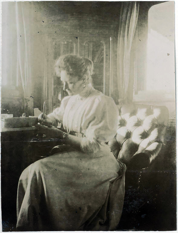 папа и тетя Ольга ушли на прогулку в чудесный лес, мои ноги болят от ходьбы, поэтому я осталась дома. Сейчас поезд наконец остановился. Сегодня утром мы совершенно промокли, мой новый непромокаемый плащ был насквозь сырой. Мы видели массу солдат: кавалерию, пехоту и артиллерию. Местность очень красивая. Пока мы стояли в деревне, нас окружили крестьяне и начали разговаривать. Одна женщина спросила меня, как поживаете вы четверо и где я вас оставила. Как это мило с ее стороны! Другие поднесли нам хлеб-соль и самые красивые цветы из их садов. Я сейчас усиленно шью для базара. Мимо нас проходит много поездов, все очень длинные.