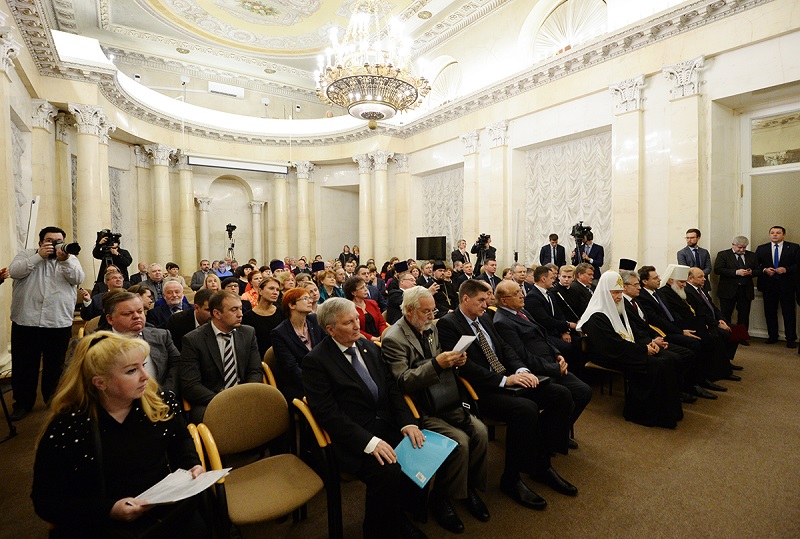 По традиции церемония состоялась в конференц-зале Президиума Российской академии наук в Москве. У главного подъезда здания Президиума РАН Предстоятеля Русской Православной Церкви встречал президент Российской академии наук академик А.М. Сергеев.