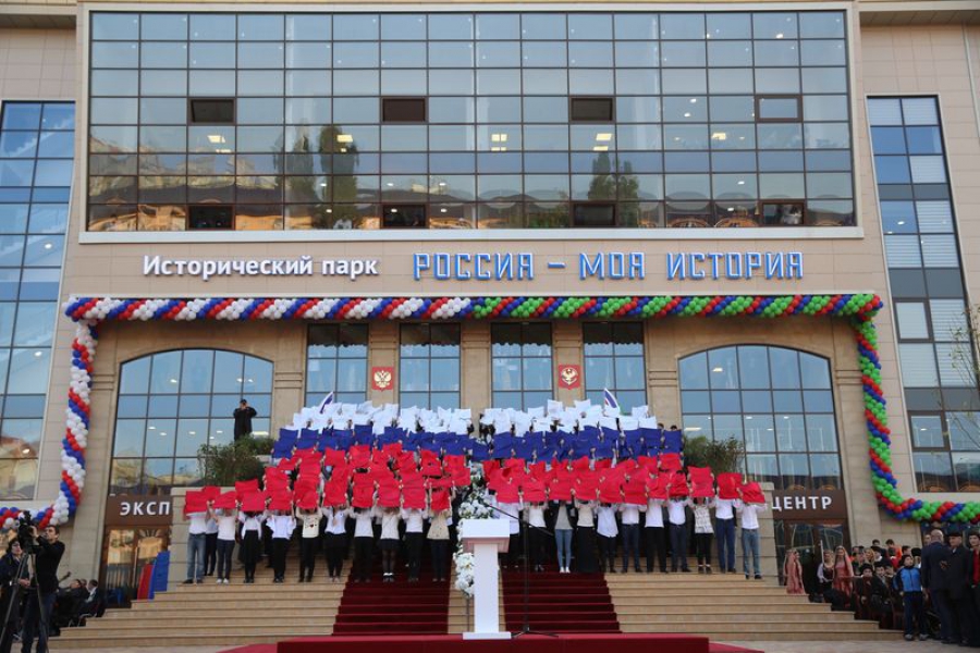 Напомним, представленная в настоящем музейном комплексе более чем тысячелетняя история России преподносится с помощью современных технологий - видеостен, панорамных кинотеатров, 3D-реконструкций, голографических инсталляций. Площадь парка в Махачкале - 13 тыс. кв. метров. Здесь, в том числе, организована региональная экспозиция: на 16 стендах, подготовленных при участии Института истории, археологии и этнографии ДНЦ РАН и Госархива.