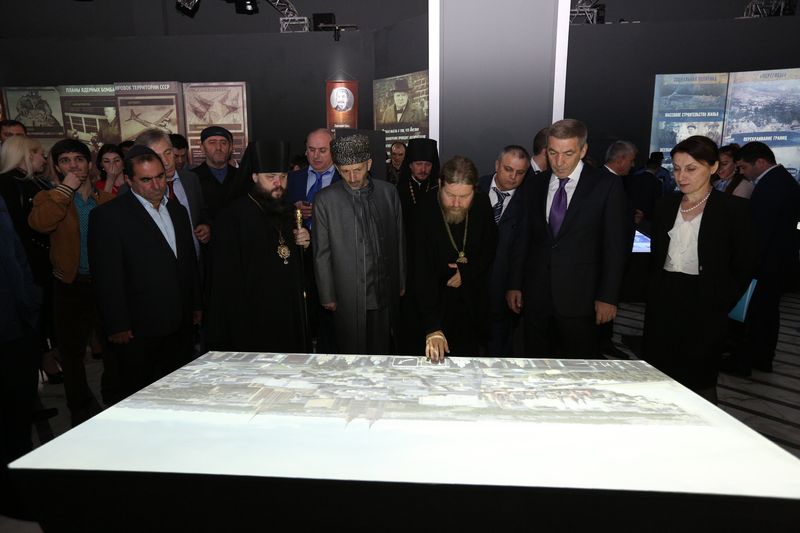 К участникам мероприятия обратился и Епископ Махачкалинский и Грозненский Варлаам: «Мне кажется, смысл сегодняшнего события выразил танец, предшествовавший открытию музея: мы видели лезгинку, русские танцы – все они были объединены общей радостью и любовью друг к другу. Мы разные – у нас разнятся традиции и культура, но мы едины в одном: Россия для нас является общим домом. Никто себя не отделяет от России, все мы – россияне. У нас общая история, которая показывает, насколько мы можем быть сильны, когда объединены общими целями и задачами. У нас один Отец Небесный, который сотворил все видимое и невидимое, у нас одна Родина, в которой мы должны созидать. А для этого необходимо знать историю, ценить ее и продолжать строить нашу общую Родину, как строили наши деды и прадеды, сохранять ее рубежи, развивать культурно самих себя, обогащаться добрыми обычаями друг друга – каждого народа, проживающего в России и в Дагестане. Дай Бог, чтобы сегодняшнее событие помогло нам объединить наши силы, осознать, что у нас единое будущее, постараться жить в мире. А там, где мир, там всегда пребывает благословение Божие. Аминь!».