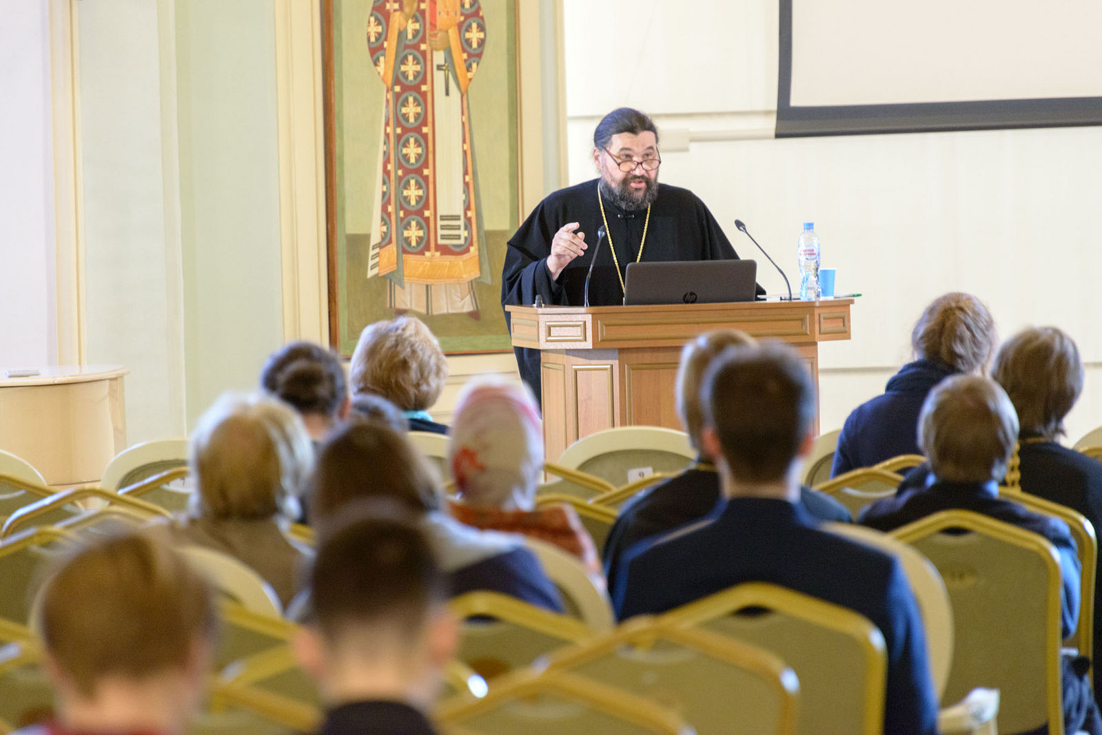 «В этом зале формировалось то духовное воинство новых мучеников, которое было возглавлено Патриархом Тихоном и которое вышло навстречу "адскому" гонению. Это, мне кажется, величайшее достижение, когда Собор действительно стал "органом" Духа Святаго, когда Собор действительно говорил, вдохновляемый благодатью Божией», ― отметил в приветственном слове ректор ПСТГУ, заведующий научно-исследовательским отделом новейшей истории Русской Православной Церкви протоиерей Владимир Воробьев.