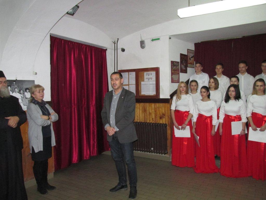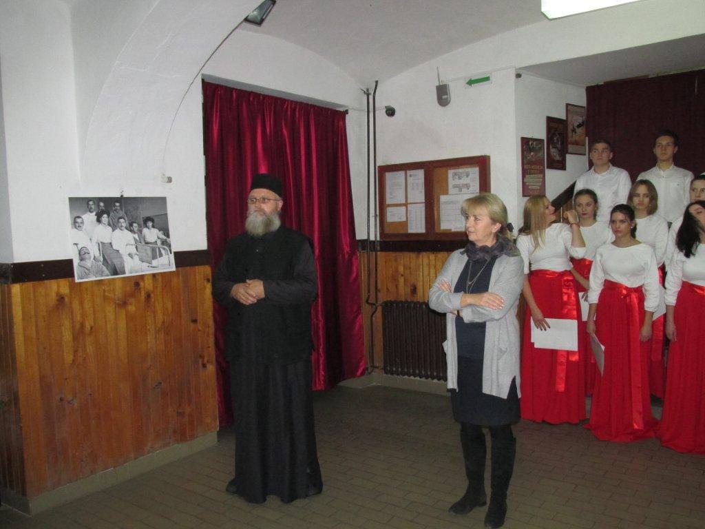 На изложби су говорили директорка школе Јадранка Пешти, протојереј Милош Јевросимов и директор Историјског архива града Новог Сада, Петар Ђурђев.