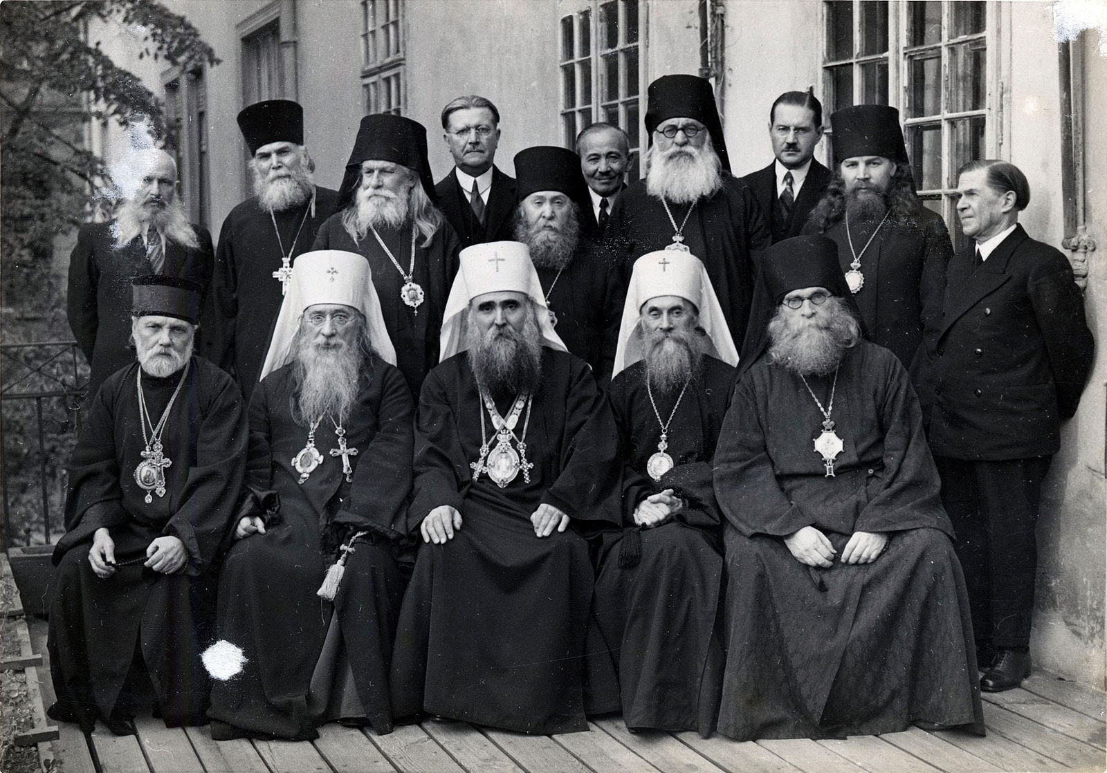 Совещание заграничных русских архиереев под председательством Патриарха Сербского Варнавы в Сремских Карловцах, на котором было выработано «Временное положение о Русской Православной Церкви заграницей.» Октябрь 1935 г. Слева направо сидят: митрополит Феофил (Пашковский), митрополит Евлогий (Георгиевский), Патриарх Варнава, митрополит Анастасий (Грибановский), епископ Димитрий (Вознесенский) Позиция Русской Православной Церкви заграницей (РПЦЗ) в годы Второй мировой войны в настоящее время еще не стала предметом большого исследования и до сих пор представляется искаженно. К сожалению, в течение советского периода все работы, посвященные этой теме, имели не столько научный, сколько идеологический характер. Отличительной особенностью этих работ были обвинения Зарубежной Церкви в поддержке гитлеровской Германии. Особенно доставалось в этих сочинениях митрополиту Анастасию (Грибановскому), возглавлявшему Русскую Зарубежную Церковь в годы Второй мировой войны[1]. Подобные обвинения звучали и со стороны Московского Патриархата. Так, в июне 1945 г., в процессе подготовки всеправославного осуждения Зарубежной Церкви, Московская Патриархия подготовила предварительный меморандум, подписанный Александрийским, Антиохийским, Московским и Иерусалимским Патриархами. Среди обвинений в адрес РПЦЗ содержался такой пункт: «измена общехристианскому делу борьбы с фашизмом»[2]. Есть основания считать, что сам Патриарх Алексий I не хотел этого осуждения, а действовал под давлением государства[3]. Запланированное осуждение не состоялось. Во-первых, идею не поддержал Константинополь, во-вторых, для осуждения был необходим Всеправославный Собор, на котором могли быть подняты крайне неудобные для советского руководства вопросы. Но мнение о РПЦЗ, как об организации, поддержавшей Гитлера, до сих пор имеет место даже в церковной среде. При этом о несерьезности подхода к вопросу говорят, среди прочего, частые отсылки к архимандриту Иоанну (Шаховскому) и его статье «Близок час»[4]. Дело в том, что архимандрит Иоанн пребывал в ведении русского Западноевропейского экзархата Константинопольской Церкви и к РПЦЗ отношения не имел.