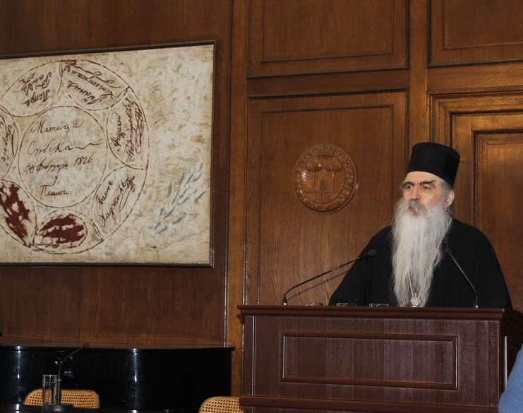 Присутнима у свечаној дворани Матице српске, Владика Иринеј је рекао да су Косово и Метохија наша трајна тема и да није питање само географије, политике, међународних односа, и томе слично. -То је трајна наша тема. Као млад монах, своје прво место службовања имао сам у Метохији и од тада па до данас то је и једна од централних тема мога сопственог живота. Питање Косова и Метохије, суштинско питање, треба посматрати са надом на Бога и будућност, казао је епископ Иринеј.