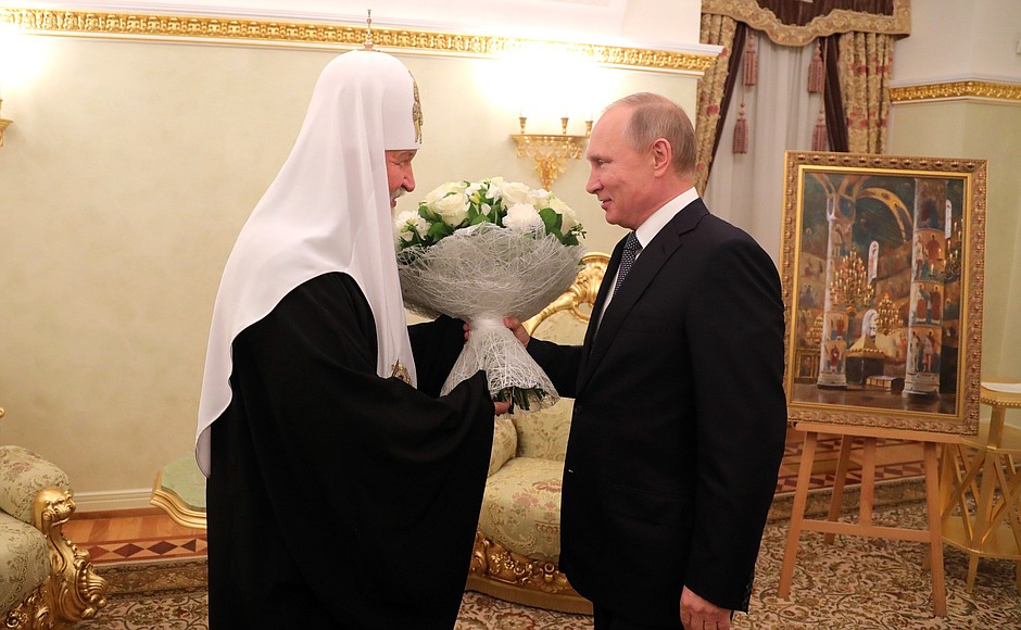 Владимир Путин встретился в Кремле с Патриархом Московским и всея Руси Кириллом. Глава государства поздравил предстоятеля Русской православной церкви с Днем рождения.