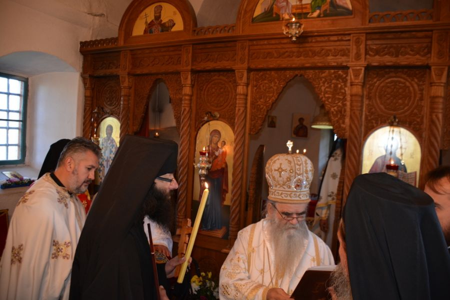 Пред почетак Литургије, коју је служио на темељима храма Светих Архангела чија обнова почиње ових дана, Митрополит је у новијем храму задужбини контесе Катарине Властелиновић замонашио искушеника ове свете обитељи Бошка, коме је дао монашко име Михаило. Такође, у првине ангелског образа обукао је послушника Василија.