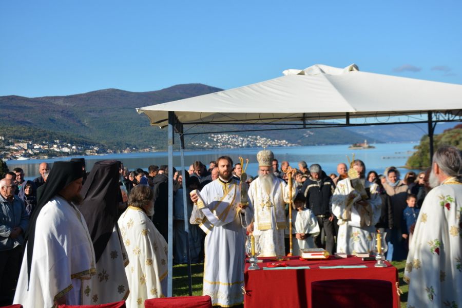 Началствовао је Архиепископ цетињски и Митрополит црногорско-приморски г. Амфилохије, коме је, као и игуману манастира архимандриту Бенедикту (Јовановићу) Свети архангел Михаил крсна слава. Саслуживали су дванаест свештеника и два ђакона, а молитвено је учествовало монаштво и вјерни народ Боке.
