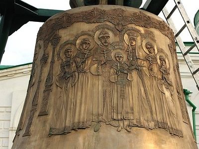 The Tsar Nicholas II Bell - which depicts the images of the Holy Royal Martrs - weighing 16.5 tons was installed earlier this week in the bell tower of the Transfiguration Cathedral in St. Nicholas Monastery in Verkhoturye (Sverdlovsk region), a major spiritual center in the Urals. The bell is the third largest in the Archdiocese of Yekaterinburg and one of the twenty largest bells in Russia.