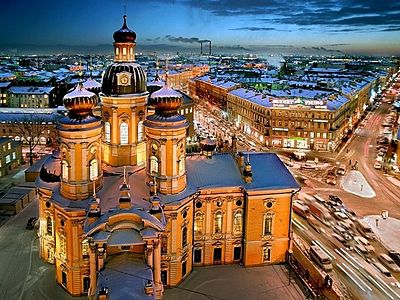 Completed in 1783, the beautiful and historic Vladimir Mother of God Cathedral is one of the oldest churches in St. Petersburg and presents a truly fascinating combination of baroque and classical architectural styles. The church is crowned with five onion-shaped cupolas, which rise into the sky above Vladimirskaya Ploschad in one of the most historic areas of the city. An impressive four-tiered bell tower stands adjacent to the church. The church is also home to one of the oldest and most elaborate iconostases in Russia.