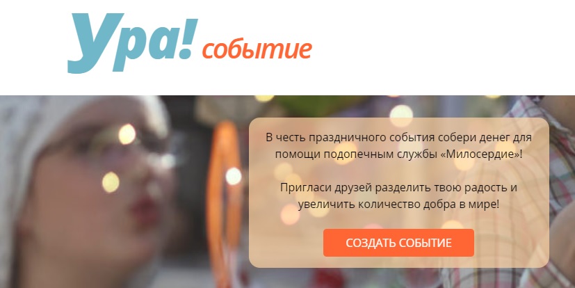 Православная служба помощи «Милосердие» разработала специальный сайт «Ура! Событие» для тех, кто хочет посвятить важное событие в жизни или просто семейный праздник делам милосердия.