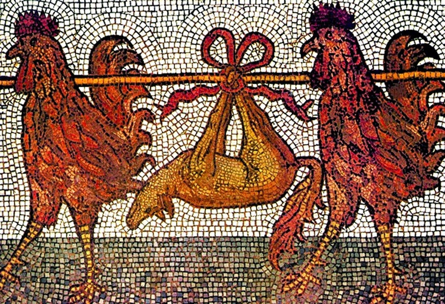 Почему этот сюжет, хорошо известный и популярный в те давние времена, запечатлевали в барельефах и напольных мозаиках христианских храмов? Потому что он предупреждал верующих: не дайте себя обмануть дьяволу, будьте настороже! Не поддавайтесь его уловкам, подобно петухам, хитроумно обманутым лисой.